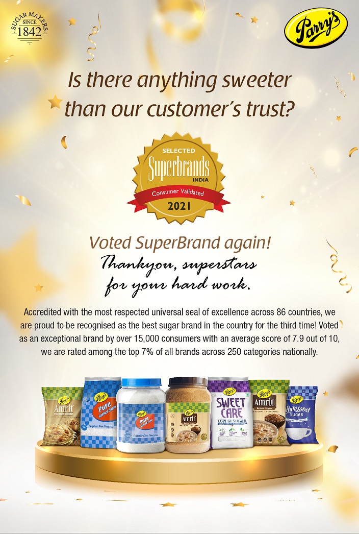 “Parry’s sugar -Voted Superbrand of the Year 2019” Only Superbrand within the sugar category in India