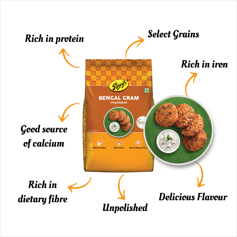 Wash and rinse Parry’s Bengal Gram and soak it in water for about 2 hours. Grind the Dal coarsely with some salt. While grinding, sprinkle a little water from time to time if it becomes too thick. Take care to maintain rough and coarse consistency of the batter.